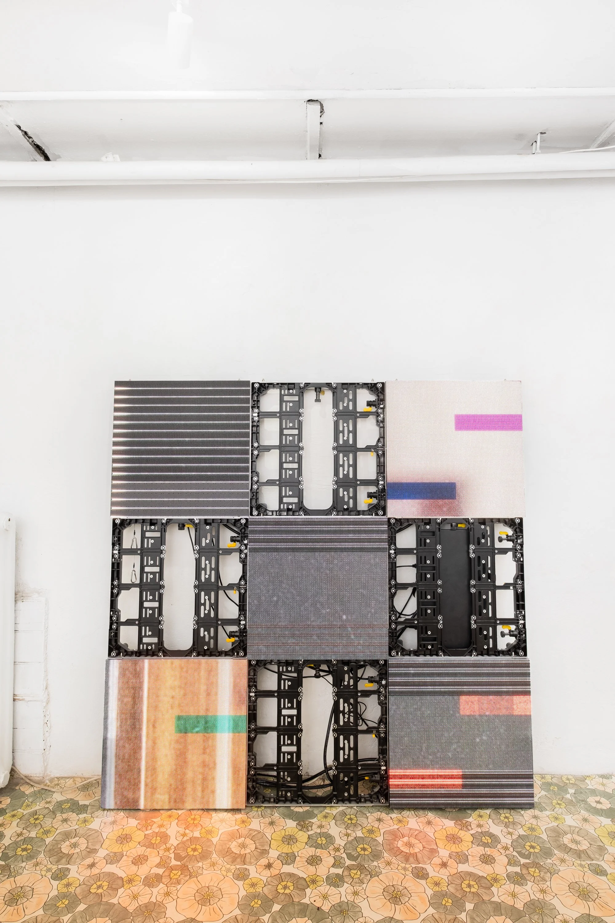 LED-display, aluminum & digital images 150 x 150 x 5 cm